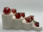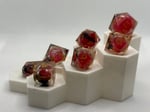 Ignite your rolls with Infernal Core, a mesmerizing liquid core set that captures fire in motion. Each die contains a swirling red liquid center encased in smoky black and clear resin, accented with gleaming gold numbering. With every shake and roll, the core dances like molten flame — power and elegance in perfect balance.